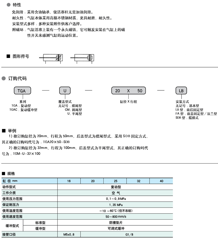 免润滑;采用含油轴承,使活塞杆无需加油润滑.