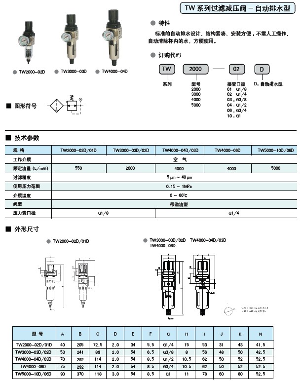 TW2000-02D,stnc减压阀,过滤减压阀,索诺天工气源处理元件