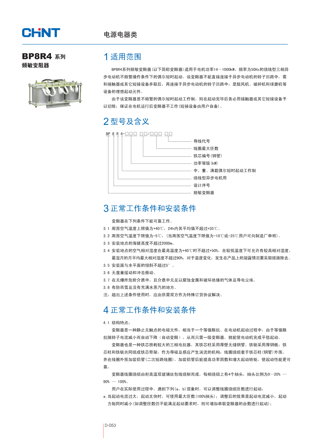 适用于电机功率 14~1000kW,频率为50Hz的绕线型三相异步电动机不频繁操作条件下的偶尔短时起动。该变阻器不能直接连接于异步电动机的转子回路中,需和接触器或其它短接设备并联后,再连接于异步电动机的转子回路中;是鼓风机、破碎机和球磨机等设备的理想起动元件。