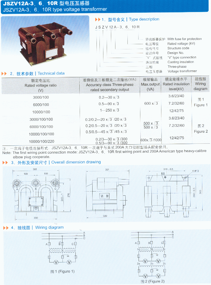 产品标题:JAZV12A-6R,6000/100,电压互感器